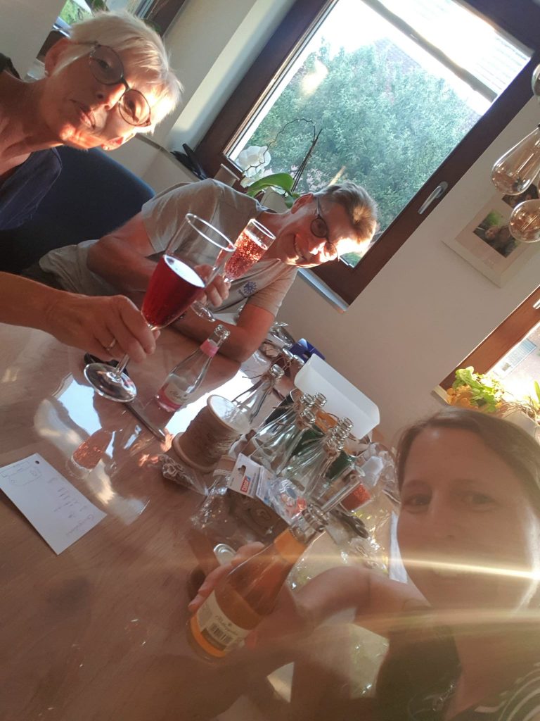 Nachdem Daniel mit seinen Jungs losgezogen ist, habe ich mir Verstärkung geholt, um die Deko zu basteln. Mit Sekt lief es wie am Schnürchen 🥂